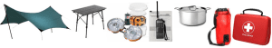 ( note there is NO Centre Pole, using a centre pole will ruin this tarp ) – 7-point inverted wing shape is stable in windy settings. – Includes 2 lightweight 22 mm diameter aluminium poles that compact to 64 cm. – Reinforced guy out points let you support it with trekking poles, trees or paddles. – Provides 18.6 square meters (200 square feet) of coverage. | ||||||